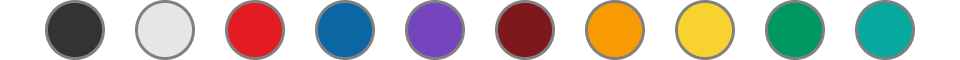 Maroon, Red, Orange, Yellow, Green, Teal, Blue, Purple, Silver, Black